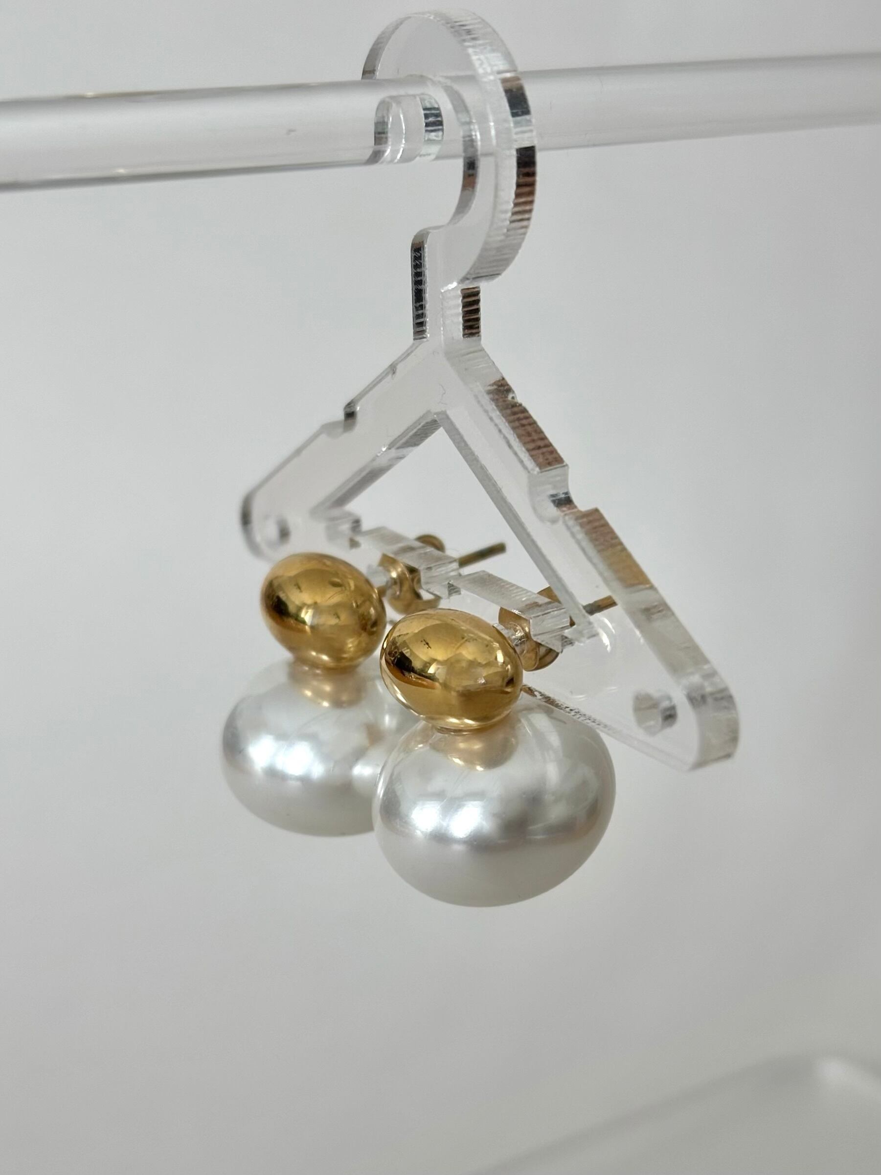 楕円形のゴールドパーツと大粒のパールが組み合わさった上品なデザイン。