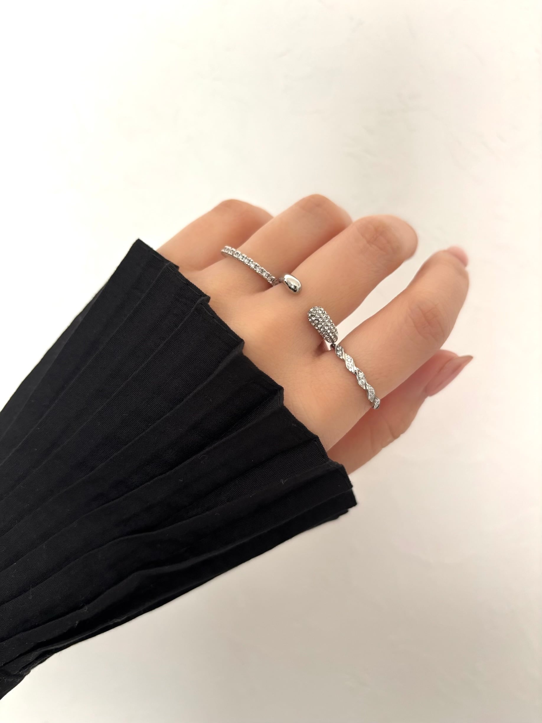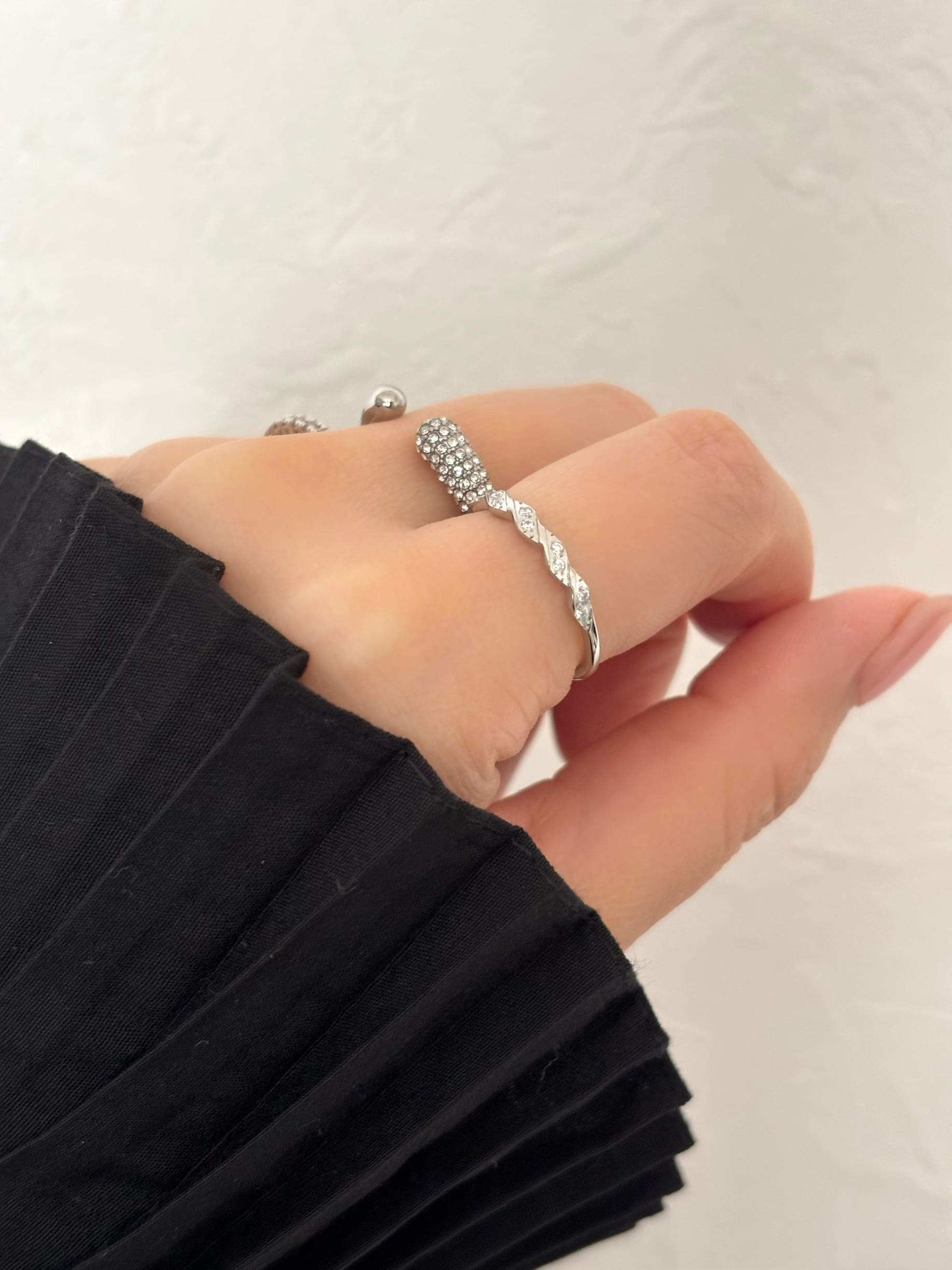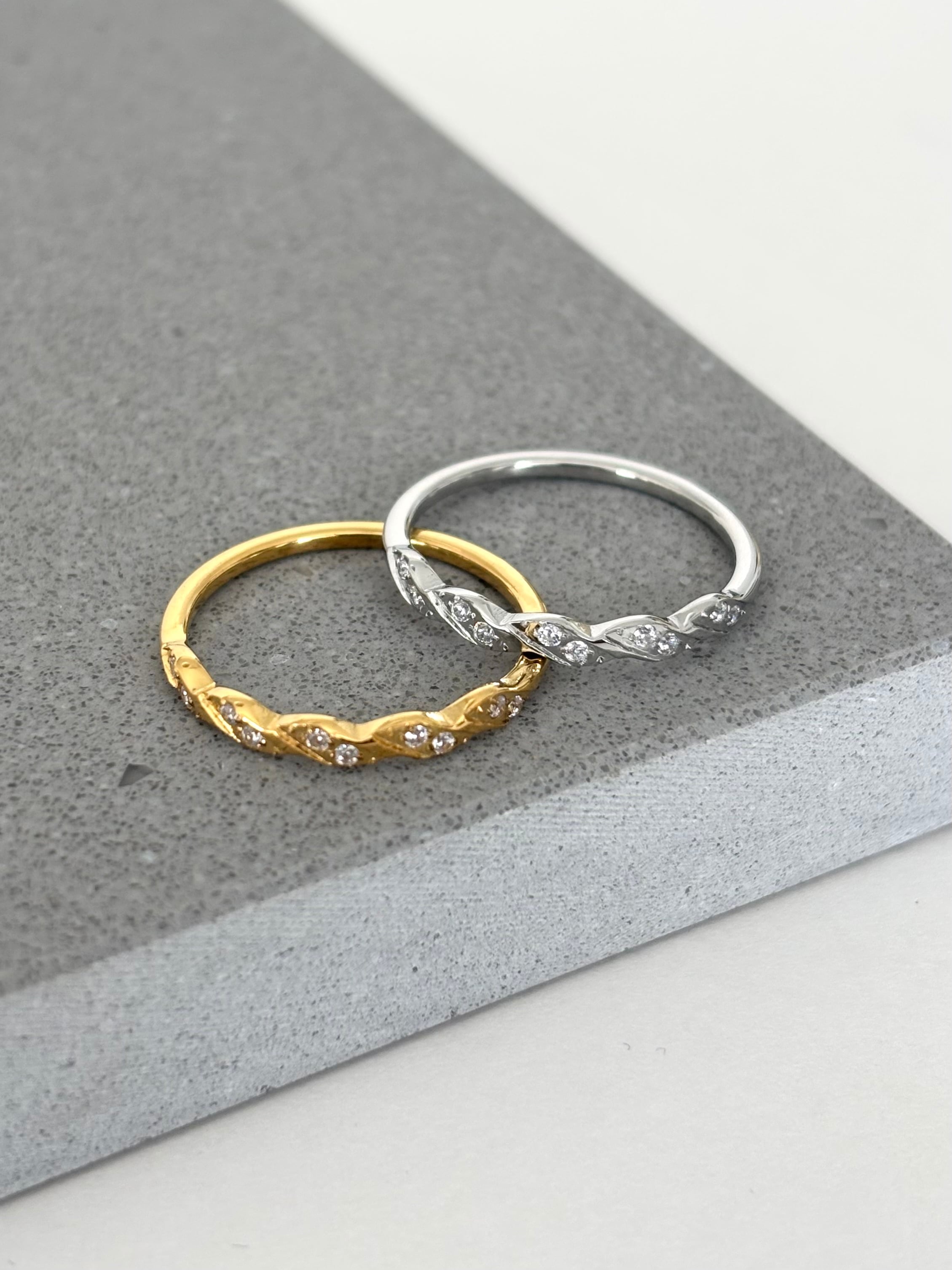 繊細なツイストラインに、きらめく小粒ストーンを施した華奢リング。