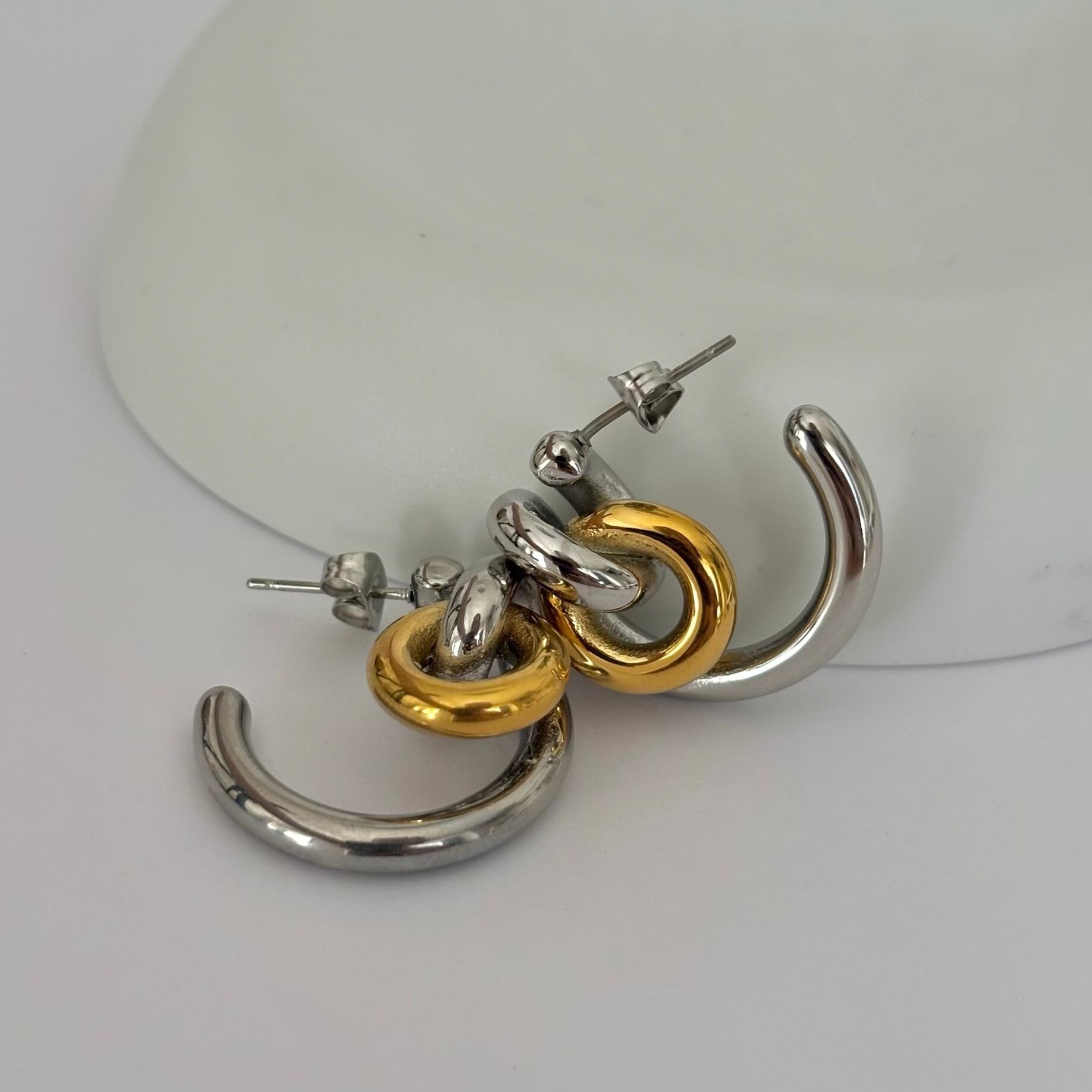 ゴールドとシルバーをミックスしたコンビフープピアス。