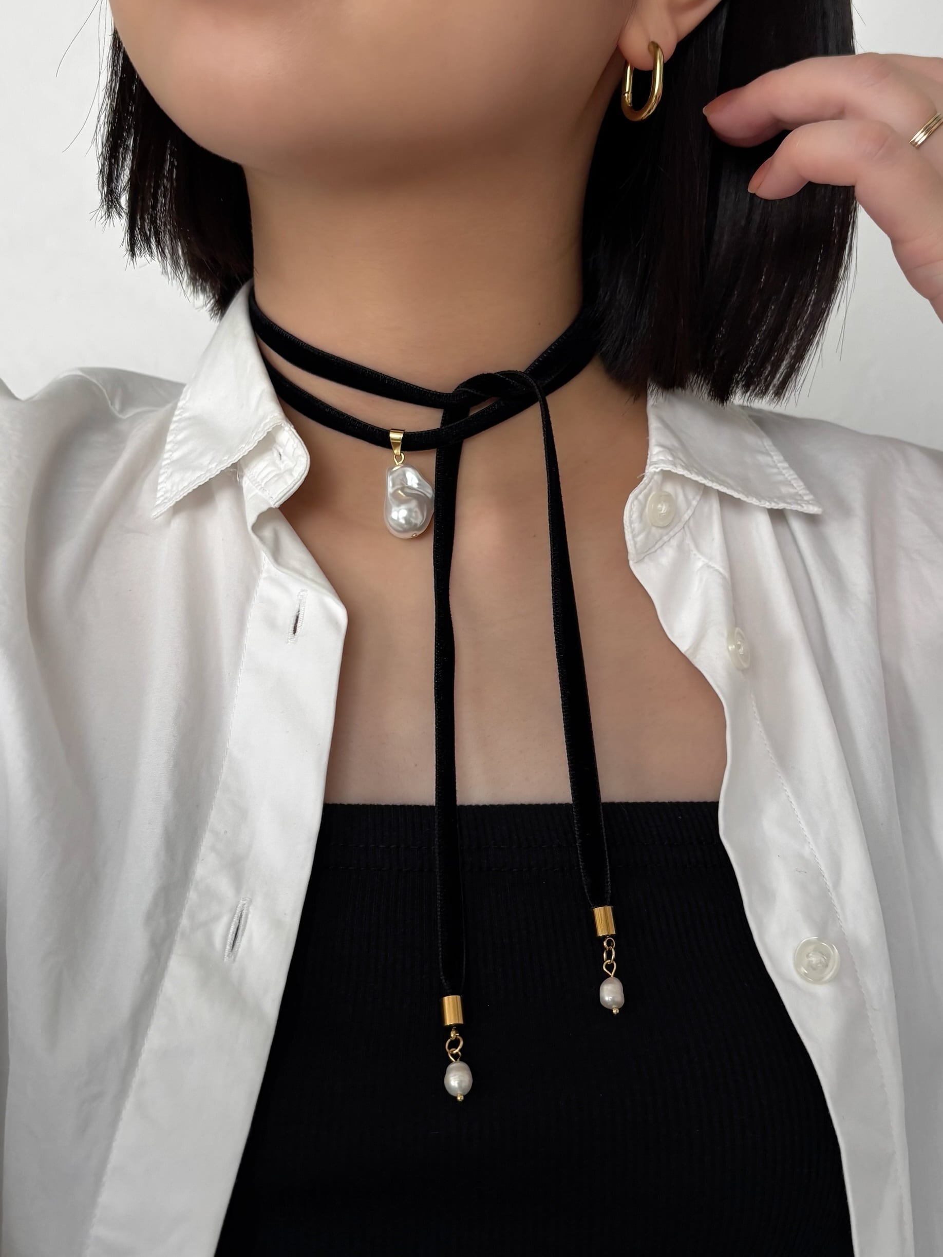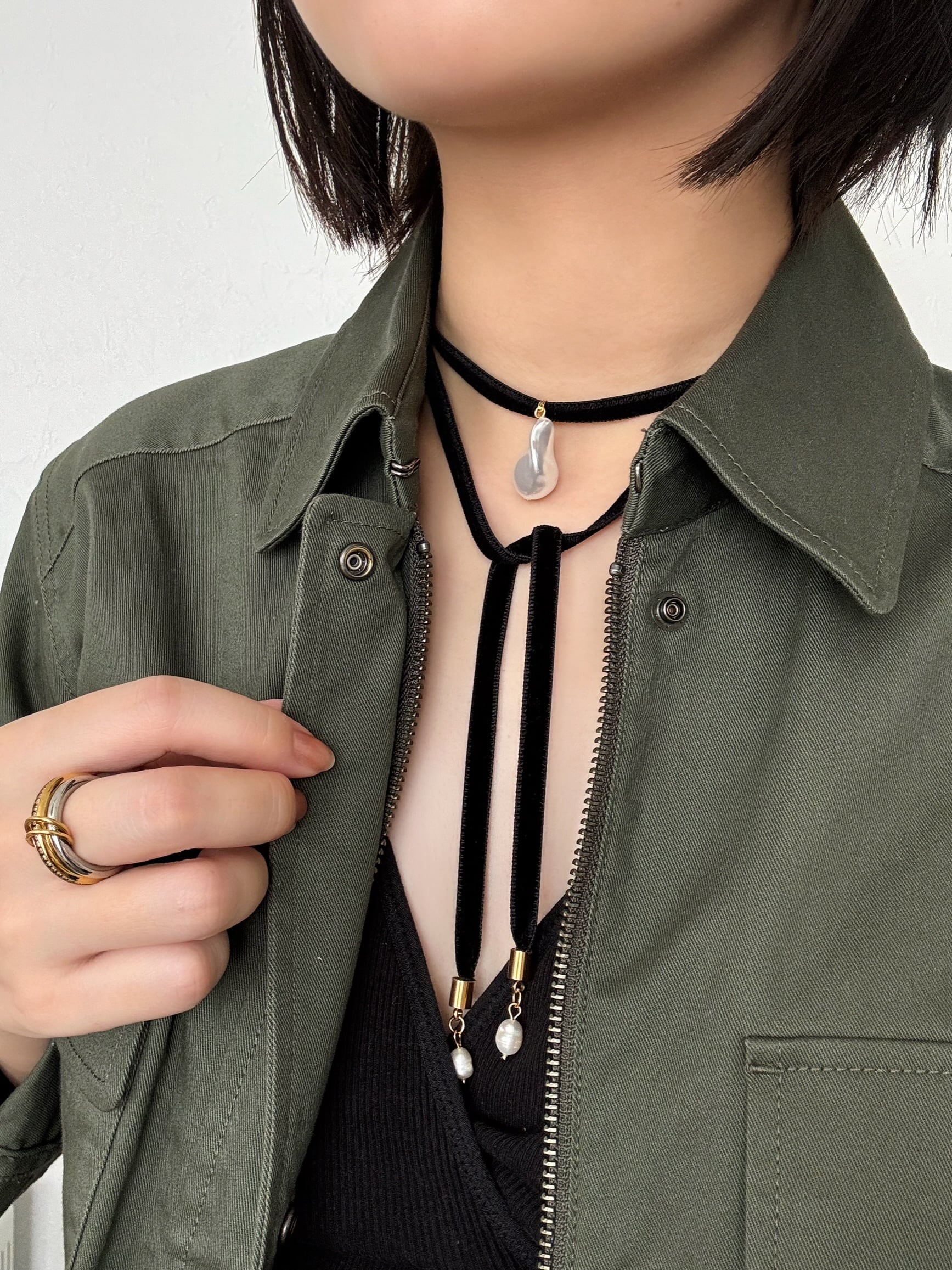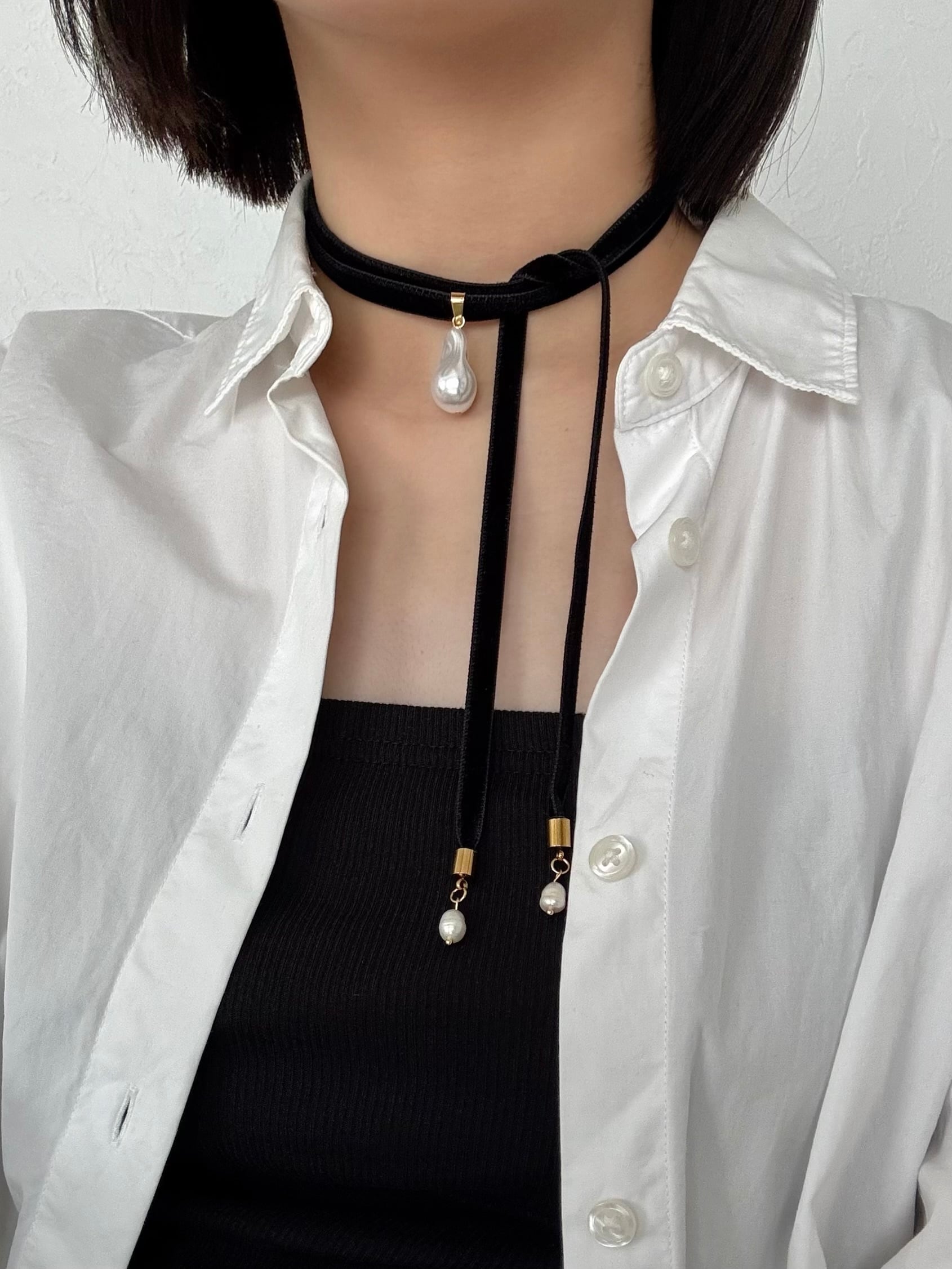 柔らかで肌あたりの良いベルベットコードに、バロックパールを合わせたチョーカー。