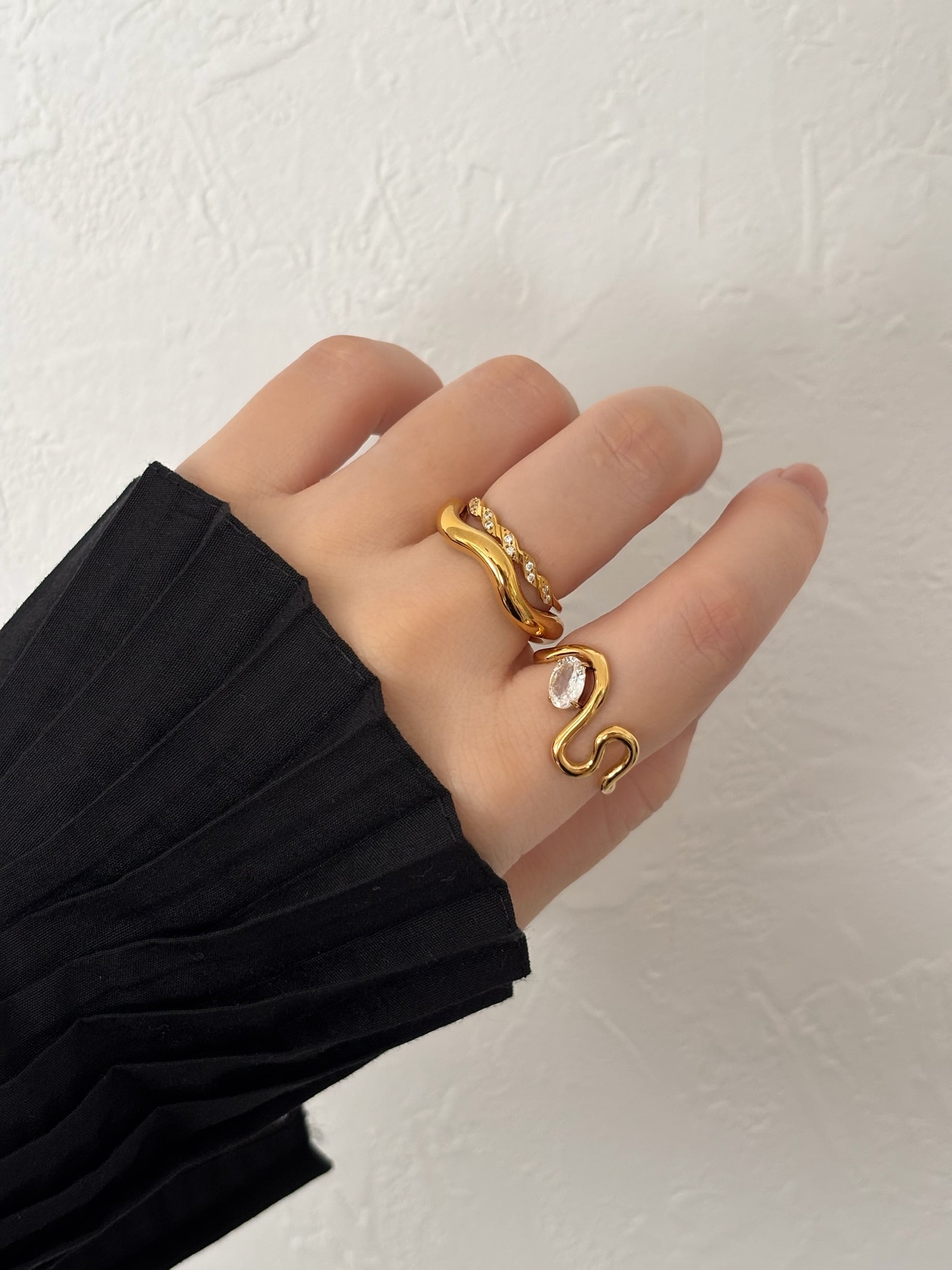 シンプルながらもボリューム感があり、重ね付けにはもちろんのこと、ひとつでも主役になるデザインです。