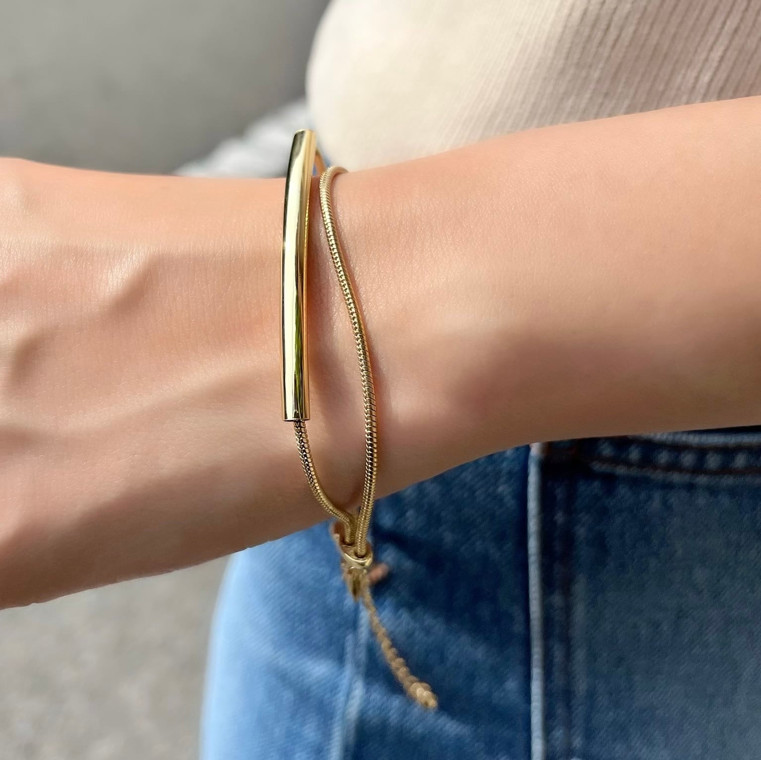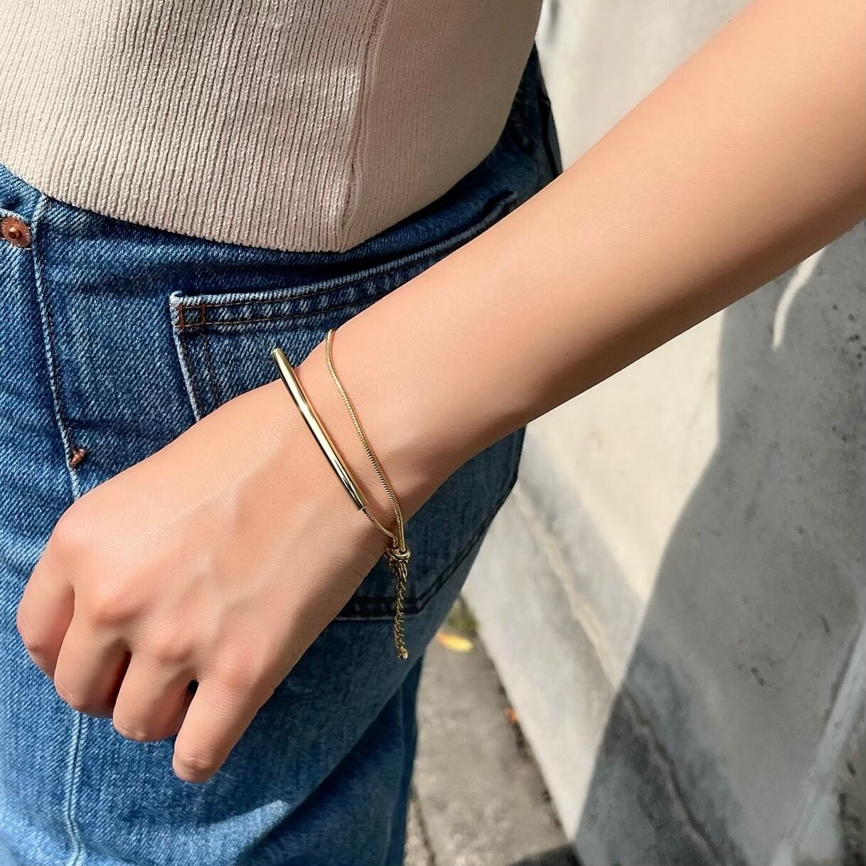 ※こちらはアウトレット商品となります。 返品交換はお受け出来ませんので、アウトレット理由や写真を必ずご確認のうえ購入くださいませ。 ◆アウトレット理由 チューブ部分に小さなへこみがある為 ※チェーンが長めの仕様となっておりますので事前にサイズを見てからご購入くださいませ。 ◾︎color gold ◾︎size 約18~23cm(サイズ調整可能) ◾︎nickel free (金属アレルギー対応) ◾︎素材:ブラス