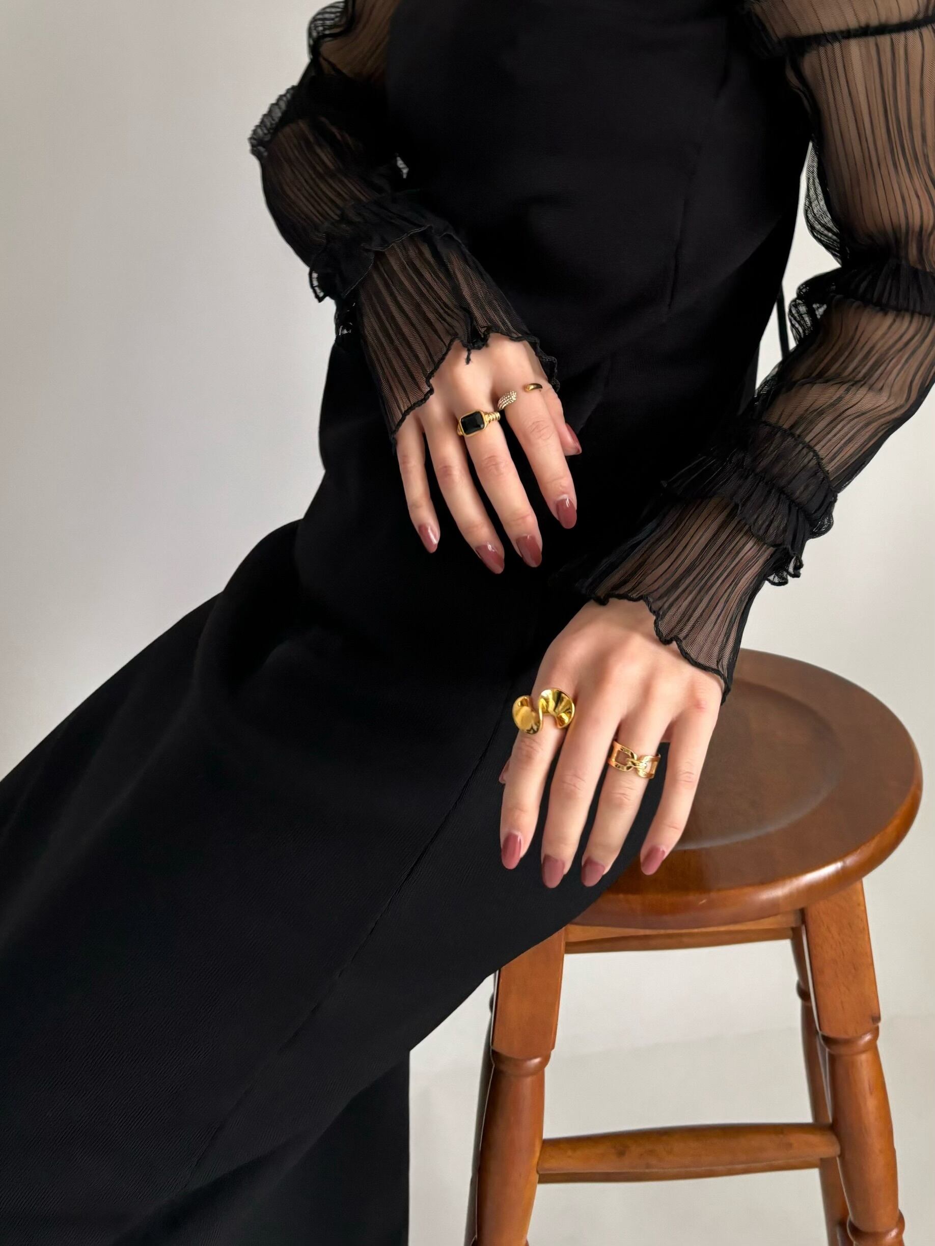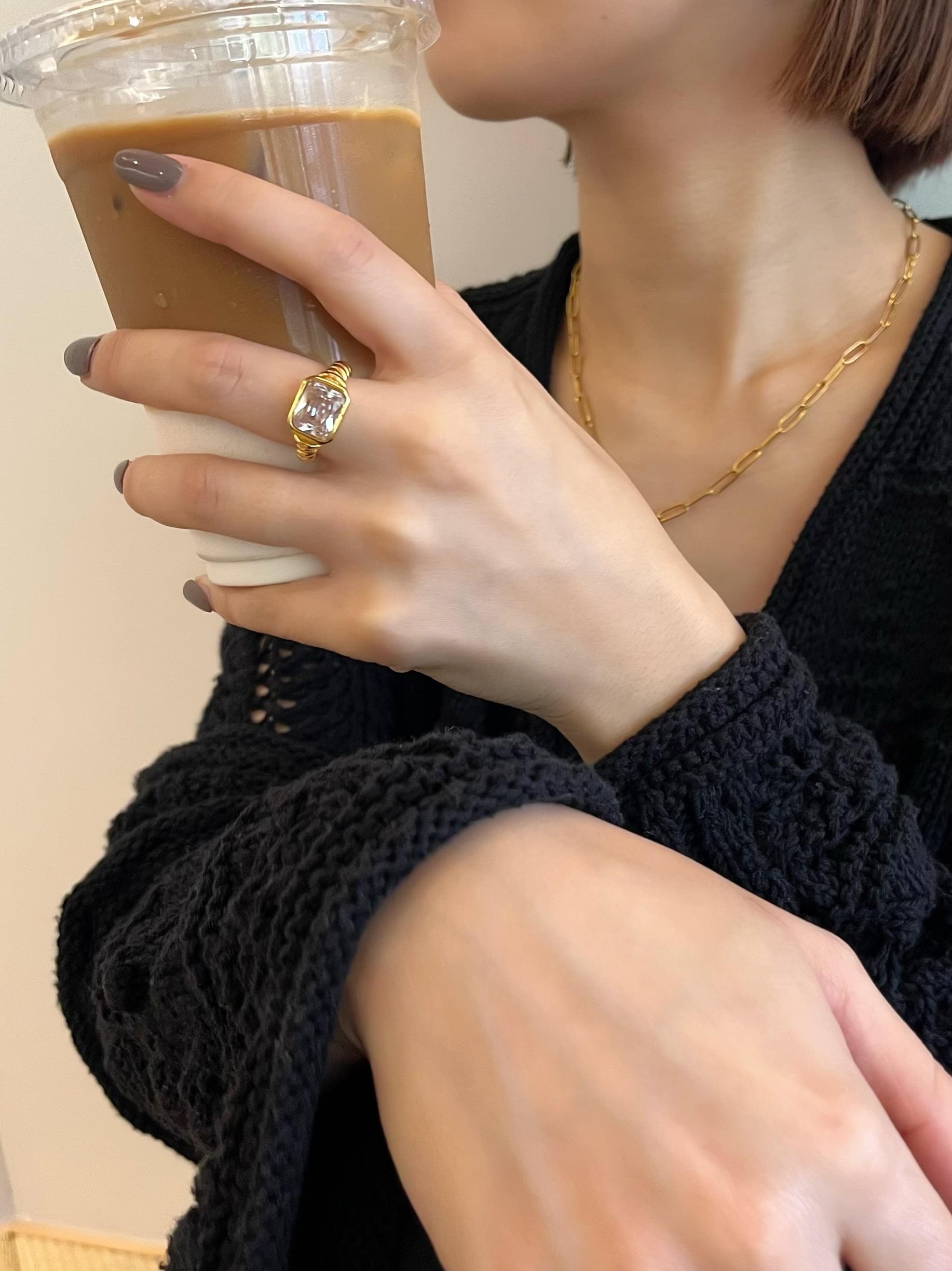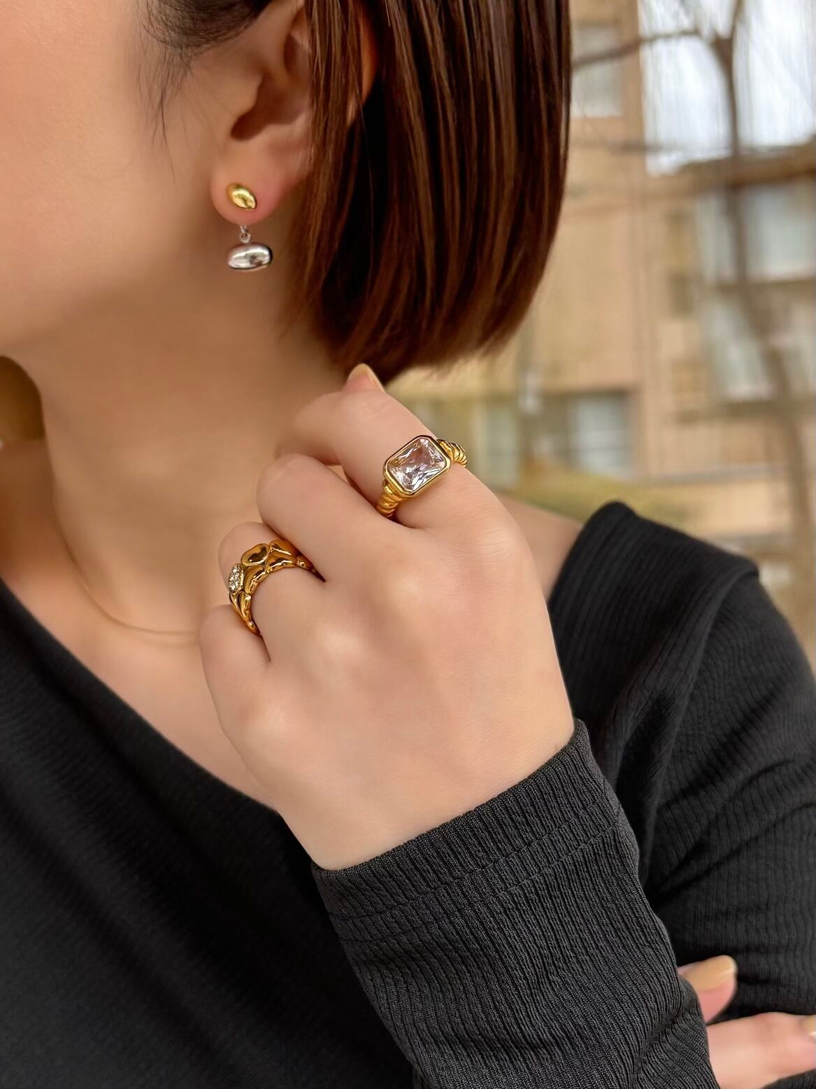 デイリーコーディネートにはもちろんのこと、パーティースタイルにもぴったりのリングです。
