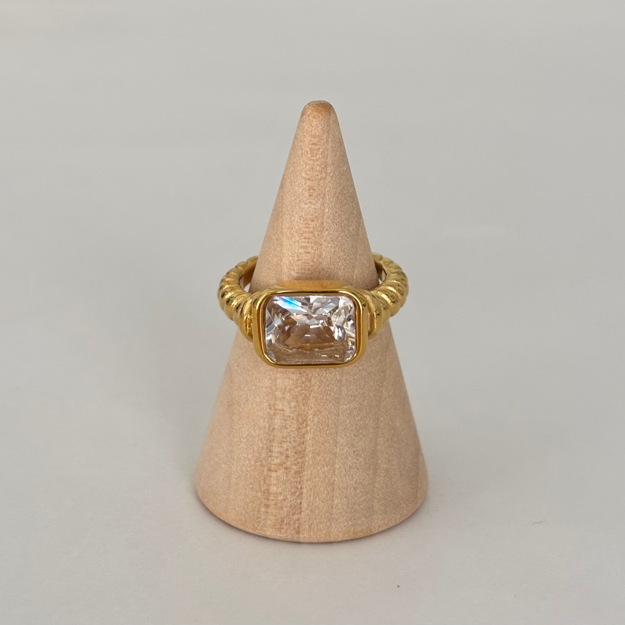 人工ダイヤモンドのジルコニアを使用した存在感のある大きめリング。