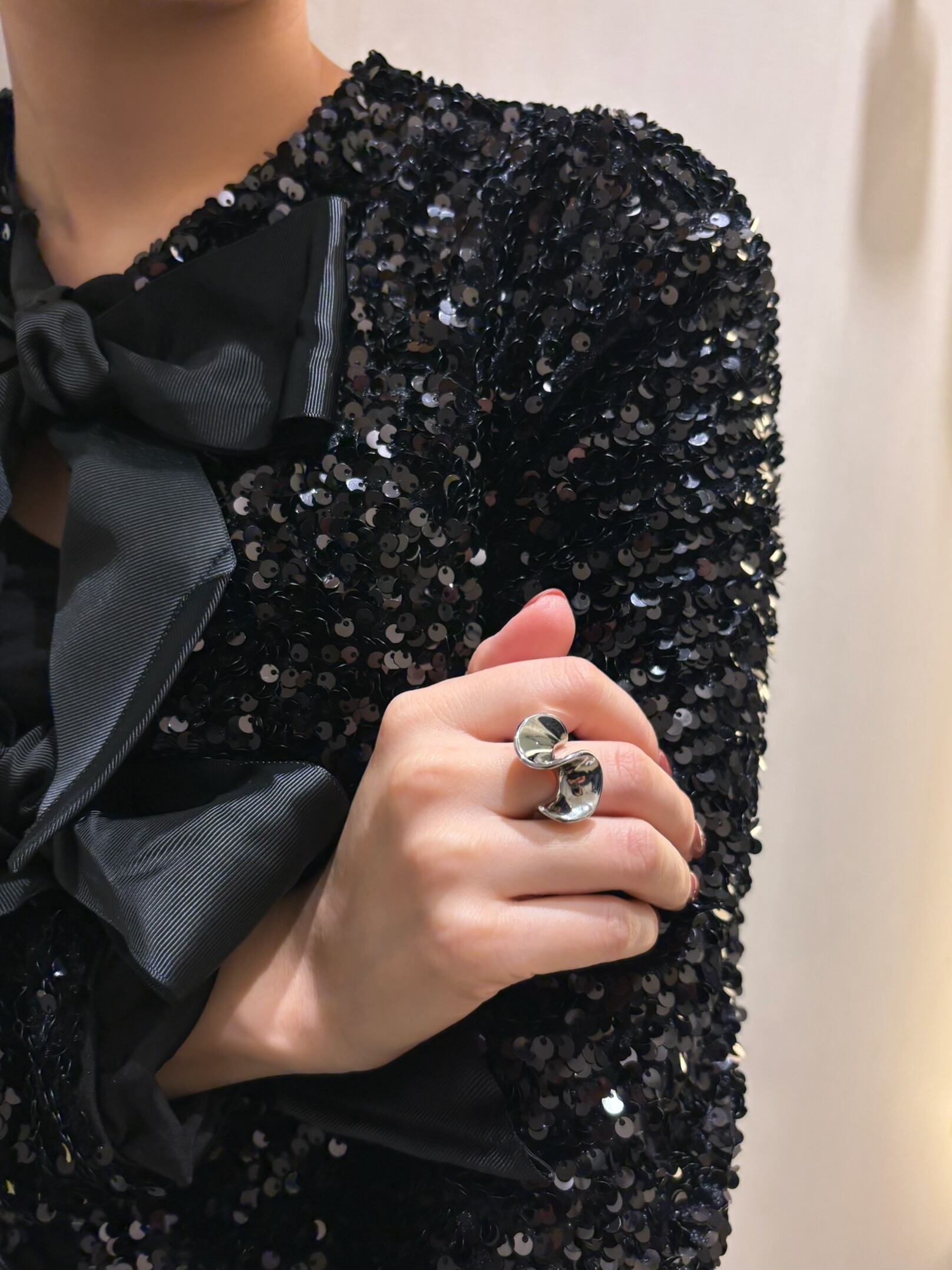 花びらのようなウェーブデザインが特徴のリング。