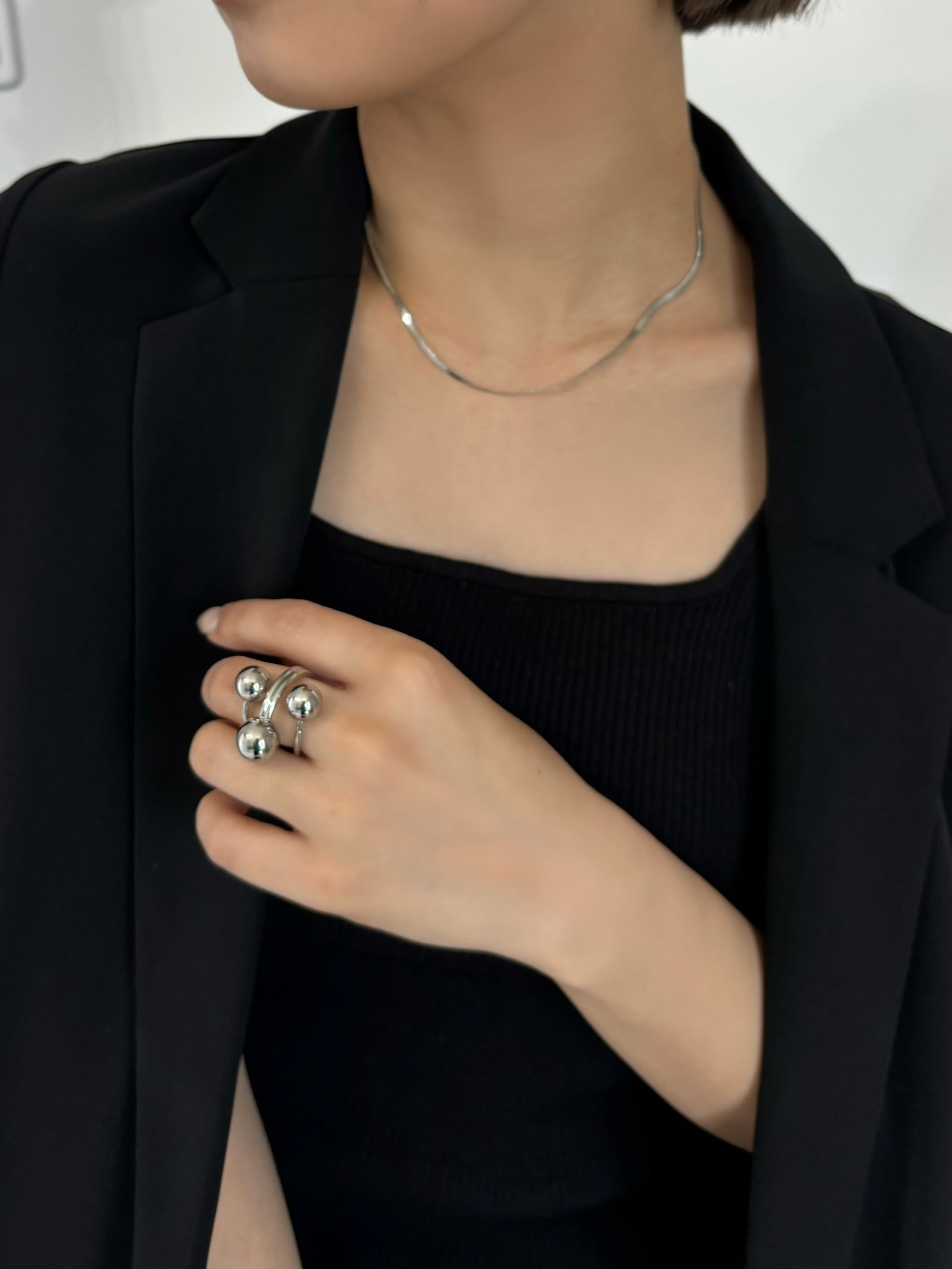 3つのボールがポイントになり、シンプルながらも存在感のあるリングです。着けるだけでコーディネートが華やかになり、パーティーやイベントなど、特別な日にもおすすめです。
